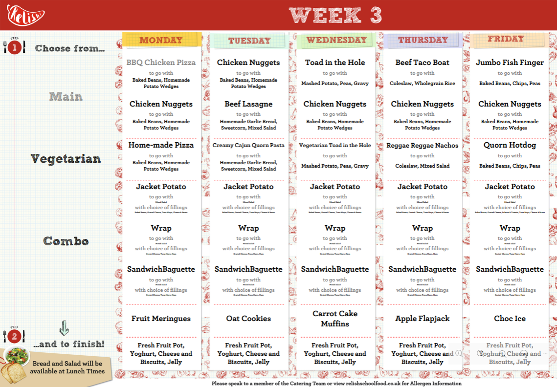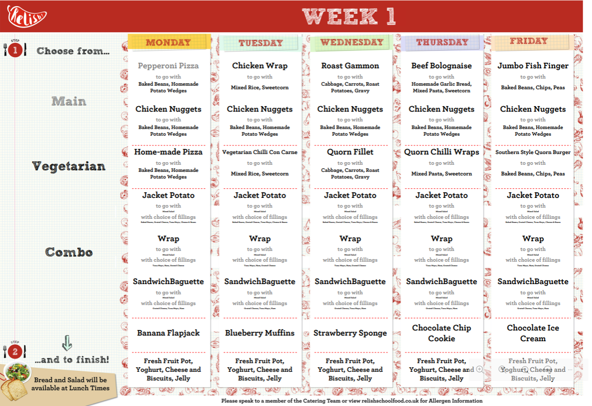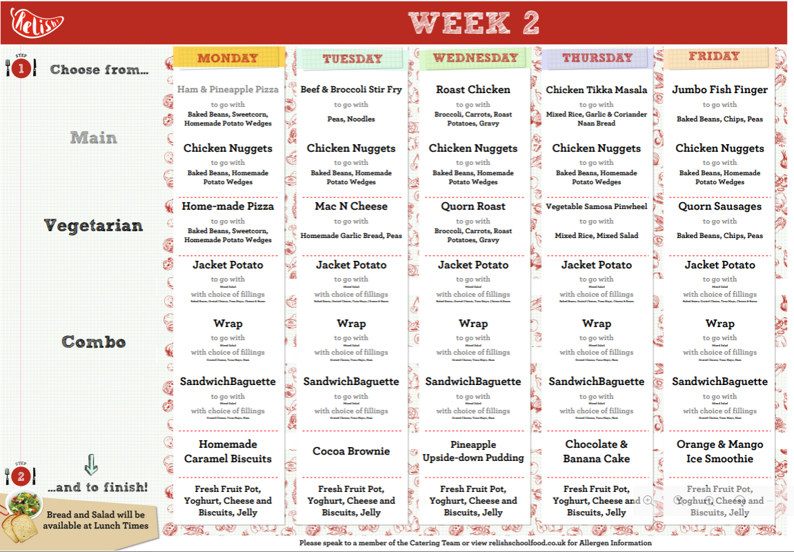 Relish are pleased to also announce that we have a special login area called the ‘Parent Portal’ on our website where you can login to view and download our menus and recipes, meal confirmation and forthcoming events.